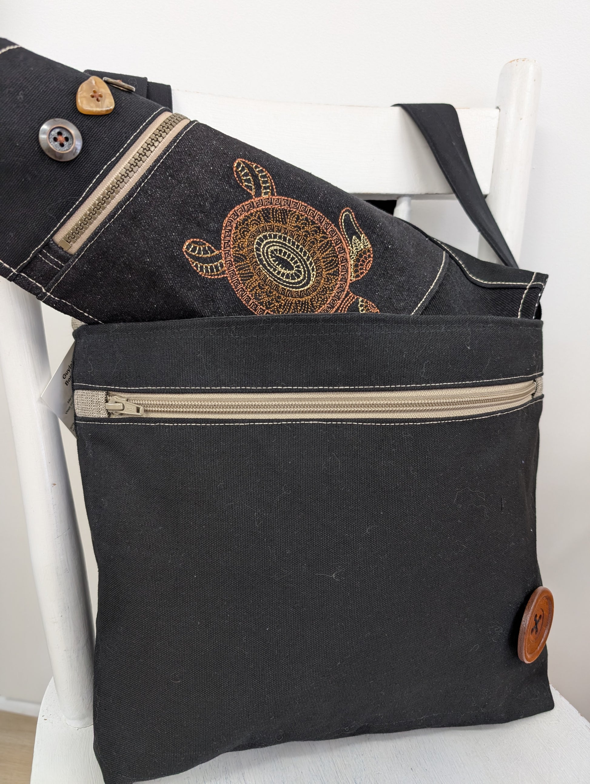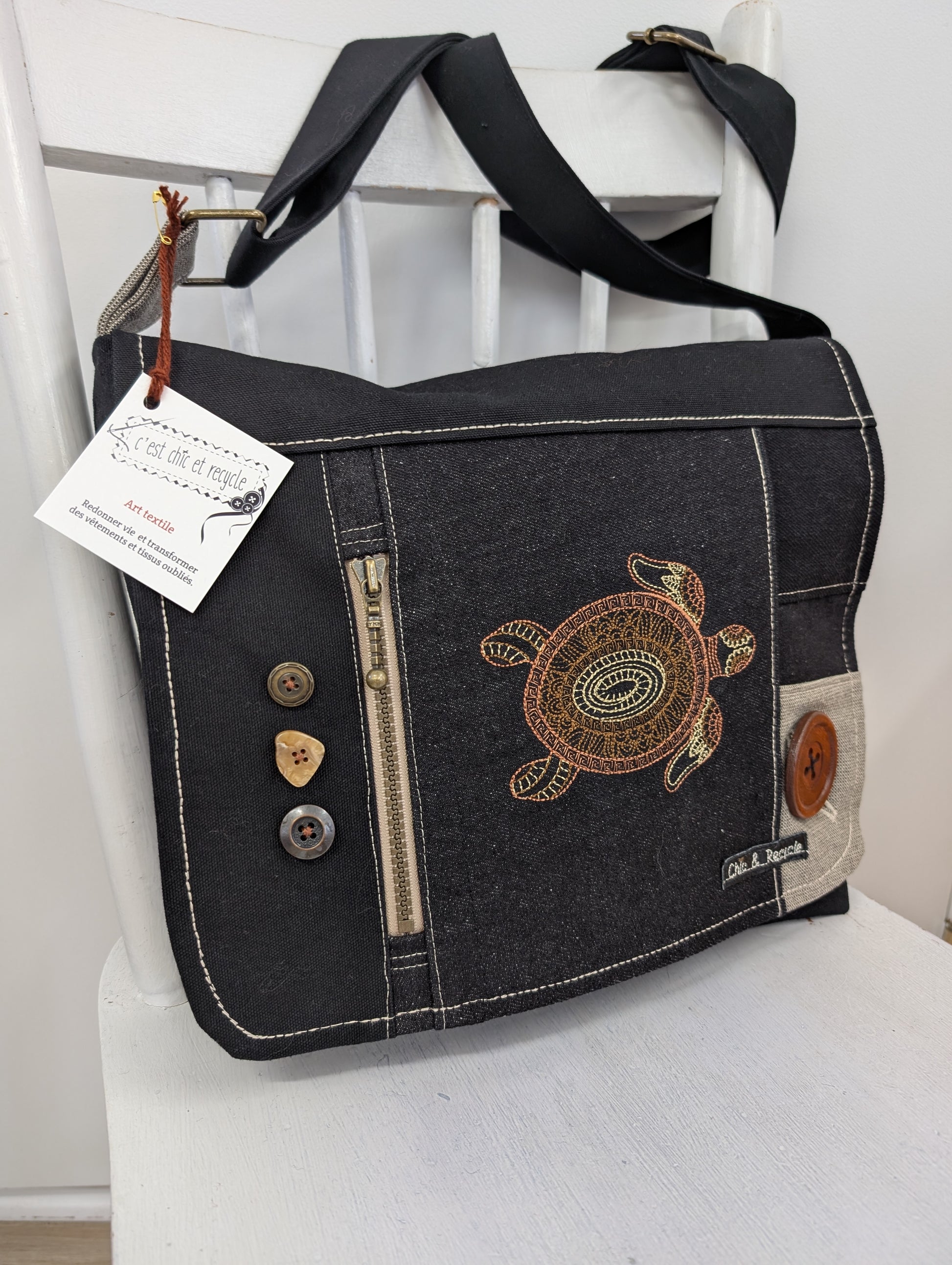 Sac pour tout les jours à vivre en sagesse. Tortue en vedette et des poches partout pour y placer tout vos articles.