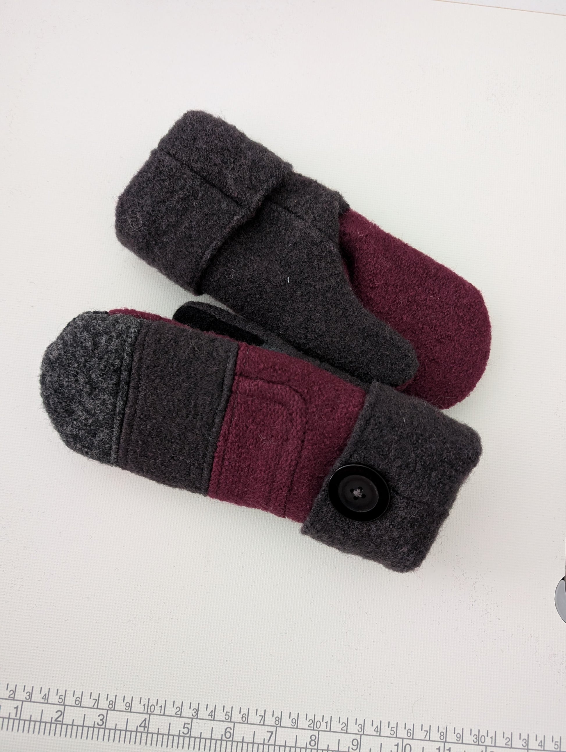 Dans un ton de mauve..rose...prunes et du gris et noir. De la laine à 100% en mode recyclage!