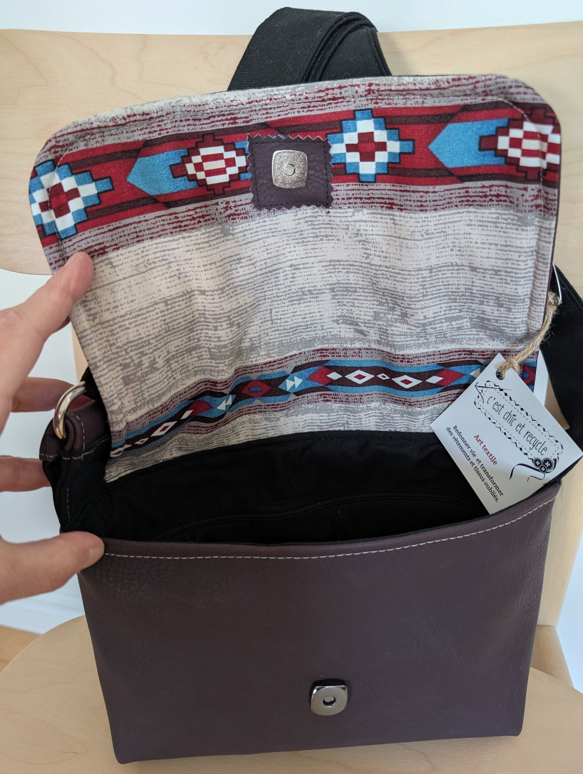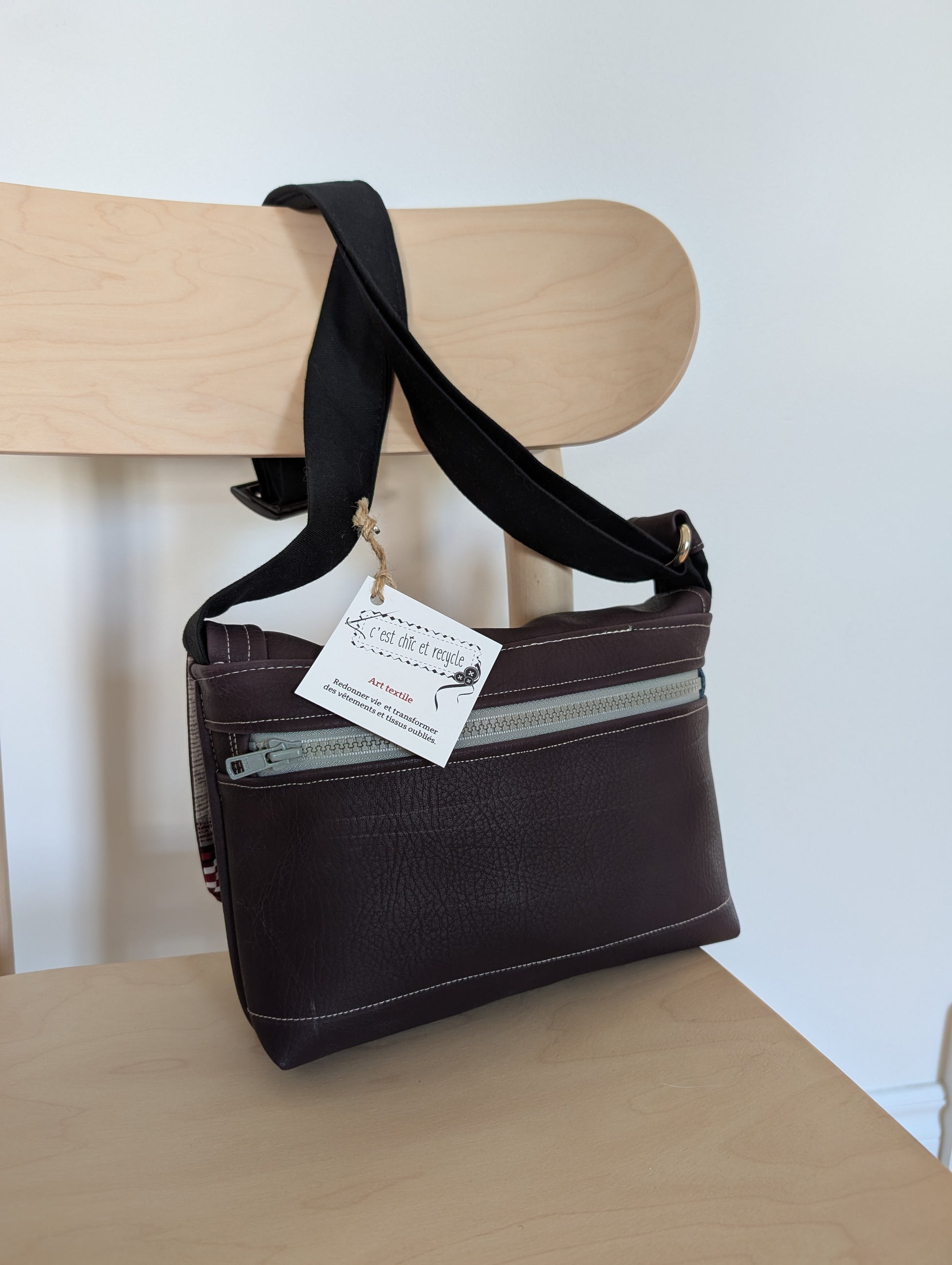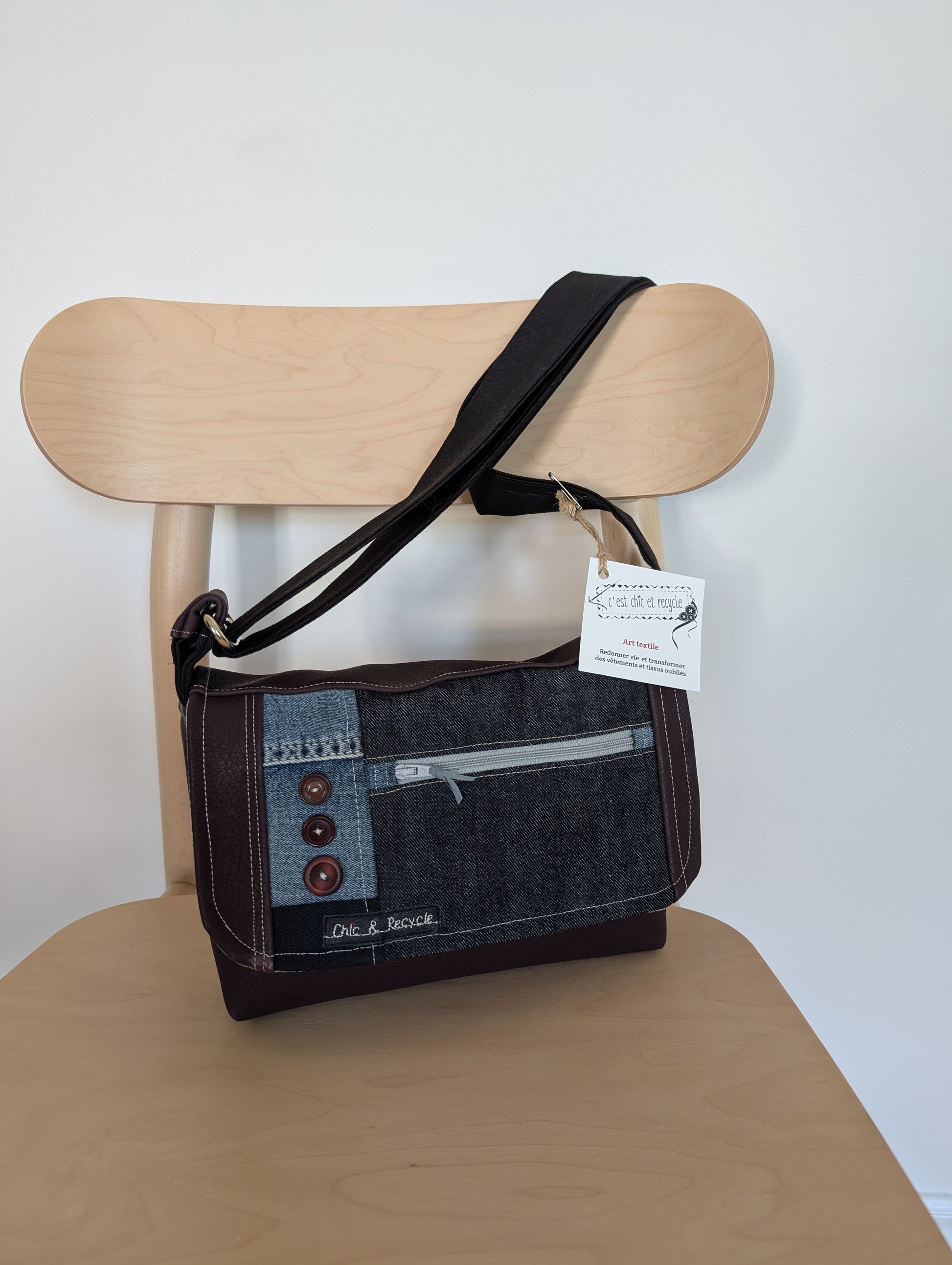 Celui ci mélange du denim et du faux cuir pour un heureux mélange de recyclage.
